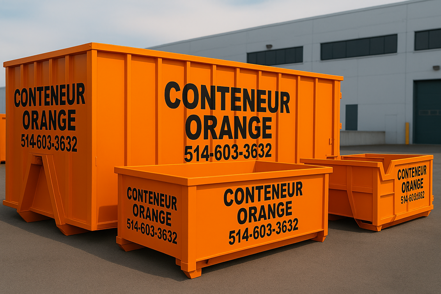 Chez Conteneur Montréal Laval et Rive Nord, nous sommes votre partenaire de confiance pour la location de conteneurs de haute qualité. Avec une offre diversifiée de conteneurs de 10 à 40 verges cubes, nous répondons aux besoins variés de nos clients, que ce soit pour des projets de rénovation, de construction ou de nettoyage. Nous nous engageons à fournir un service rapide et fiable, en alliant qualité, efficacité et respect de l'environnement. Contactez-nous au 514-603-3632 ou par email à conteneurorange@gmail.com, nous sommes à votre disposition 7 jours sur 7 jusqu'à 21h.